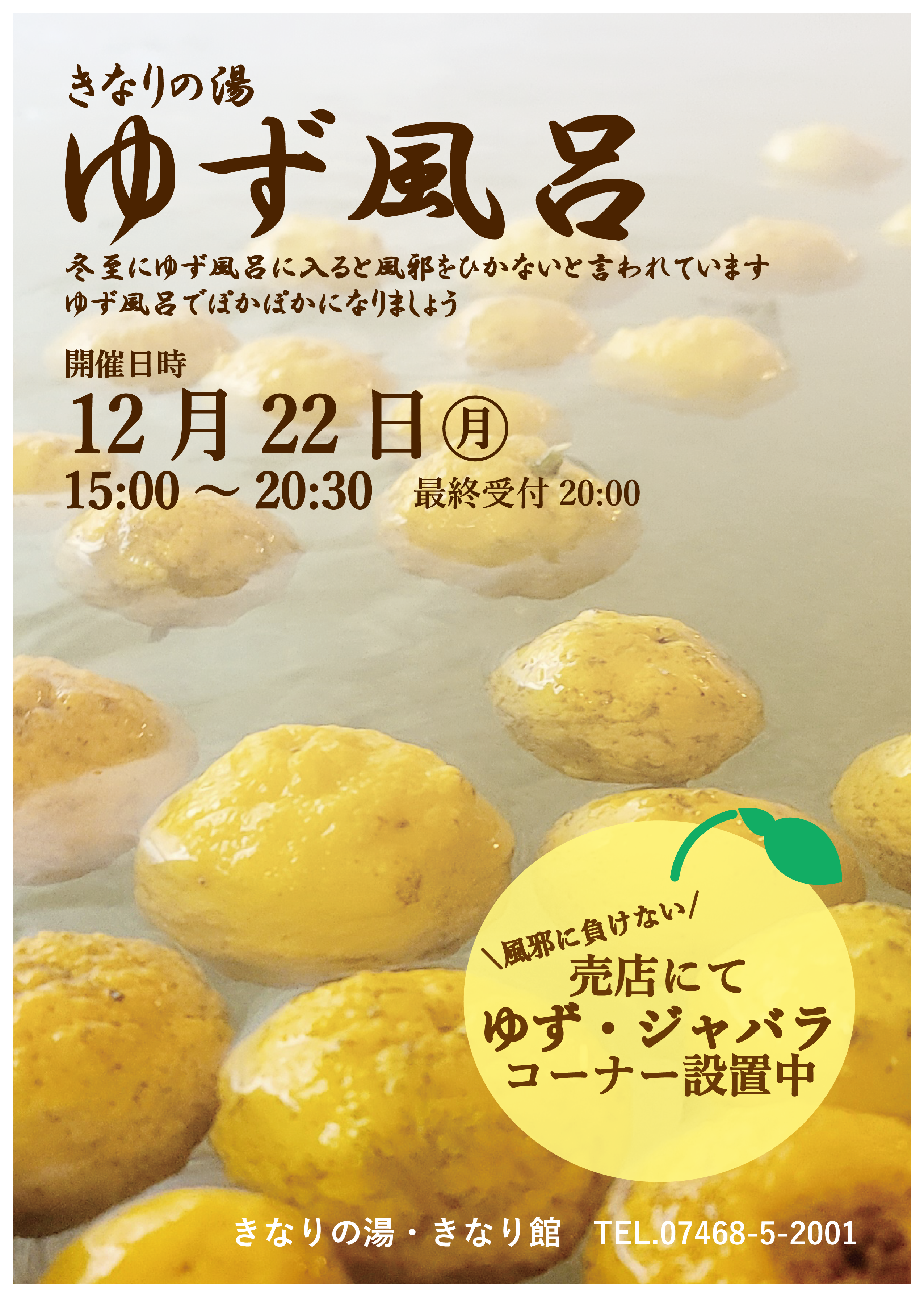 毎年恒例!きなりの湯はゆず風呂を開催いたします👏👏